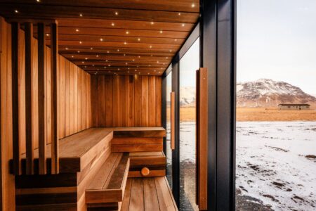 UMI Hotel is situated with gorgeous views of the notorious Eyjafjallajökull Volcano and surrounding Mountain range one way, and the Westman Islands in the Atlantic from the restaurant the other. This modern new hotel with 28 rooms is family run, with the inspiration for its materials and colours drawn from the surrounding Volcanic landscape.