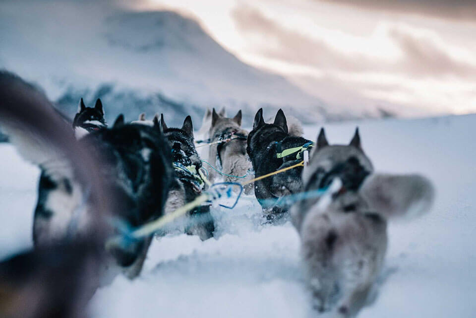 - Dog sledding with Alaskan huskies