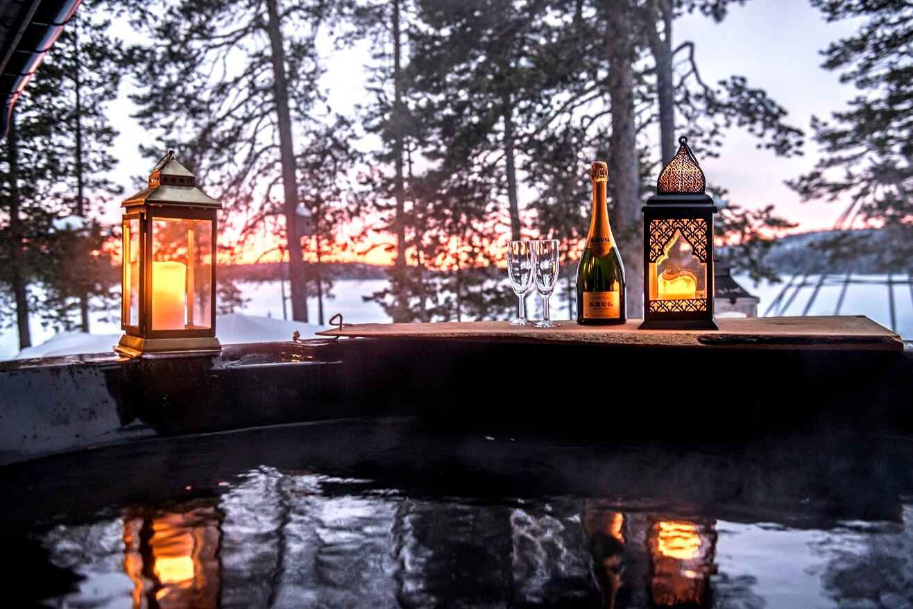 Breakfast is followed by check out and a private guided forest skiing experience through snow laden woodland. Guests glide silently through nature before stopping for an outdoor lunch beside the fire. A private transfer then leads to Arctic Bath where guests check into floating water cabins. Time is reserved for spa facilities including hot and cold baths before an Arctic Culinary Experience dinner showcasing regional ingredients and refined Nordic flavours.